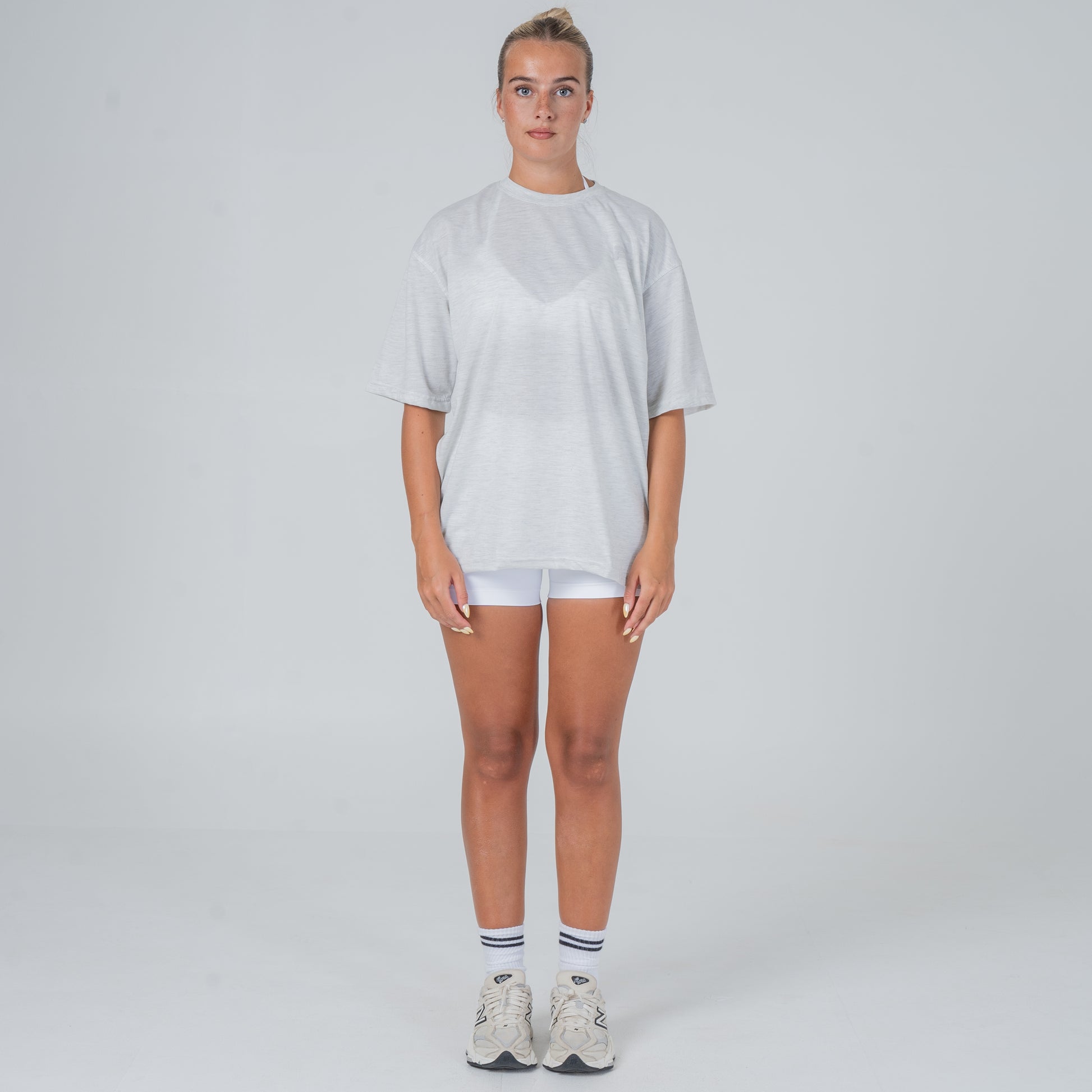 Say goodbye to tucking your tee into your sports bra mid-workout. Our Oversized Gym T-shirt features a patent-pending drawstring back—a sleek, secure way to cinch your shirt without compromising style or comfort. Whether you're lifting, stretching, or hitting cardio, this staple piece stays in place your way.
